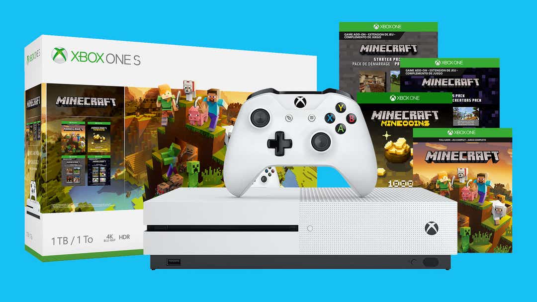 - Microsoft Xbox One S 1TB Minecraft Creators Bundle—$199 (Save $100): Get the popular 1TB Xbox One S with Minecraft, the cult-favorite building game that's great for all ages.