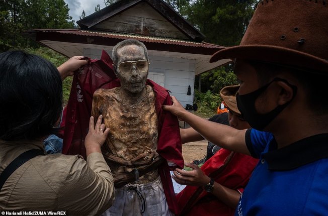 印尼南蘇拉威西省(South Sulawesi)的托拉雅族(Toraja)部落至今仍保留一項非常特殊的習俗「MaiNene」,族人會將親人的木乃伊挖出並妝點、裝飾,藉由慶祝來緬懷先人。
