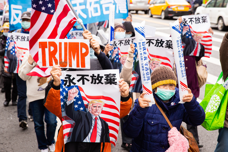 2020年12月19日,台灣各地民眾齊聚台北市信義廣場,參加「挺川滅共」遊行集會。(李曜宇/大紀元)