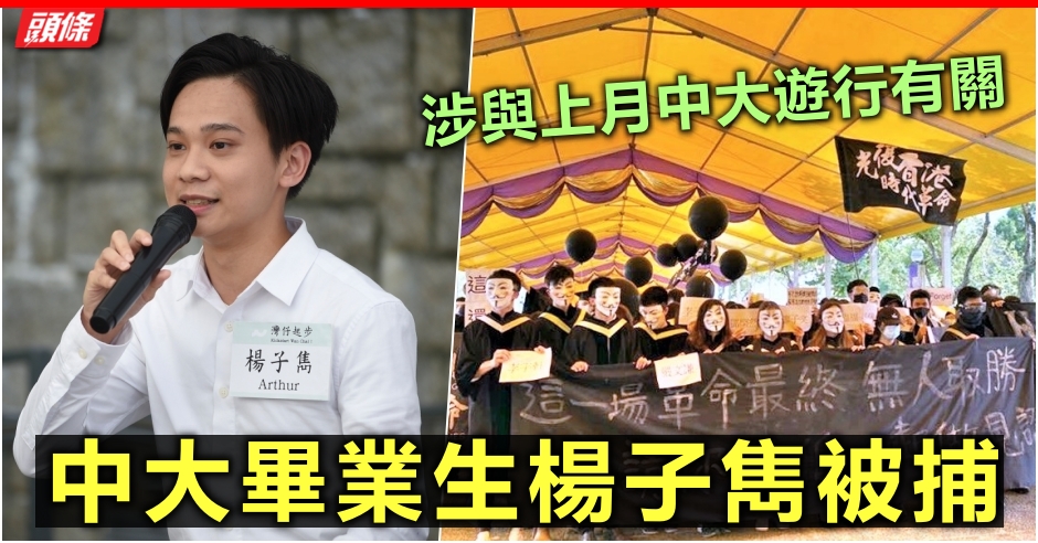 中大畢業生楊子雋被捕 涉與上月中大遊行有關 - 港聞 - 即時新聞 - 頭條日報 Headline Daily - 頭條日報 Headline Daily