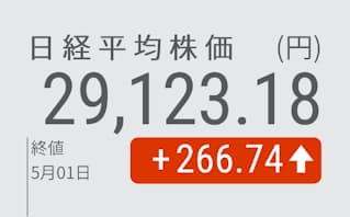 1日午前の東京株式市場で日経平均株価は続伸し、前週末比199円81銭(0.69%)高の2万9056円25銭で前場を終えた。取引時間中に2万9000円を上回るのは2022年8月中旬以来およそ8カ月ぶり。上げ幅は280円を超える場面があった。外国為替市場で円相場が円安・ドル高に傾いたことを背景に、輸出関連株に買いが優勢となった。前週末の米株高も投資家心理を支えた。