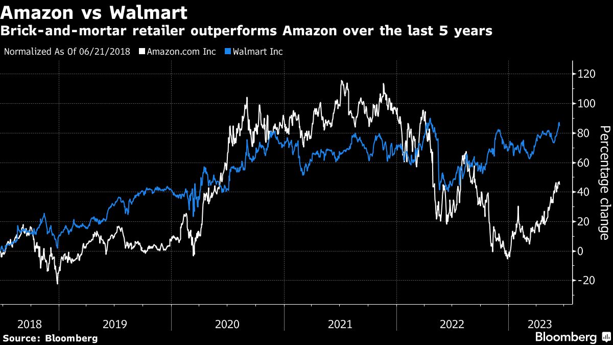 Its shares, which lost nearly half their value last year as routs ravaged technology and growth stocks, have rebounded this year to rise 49% through Friday’s close. Meanwhile, Walmart shares have seen a relatively steadier growth curve over the past five years, rising 9.7% this year.